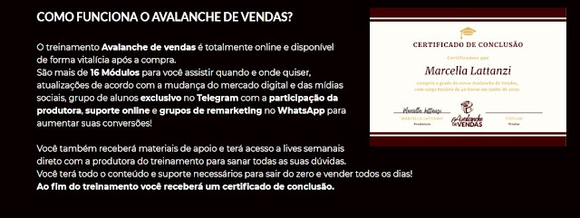 Sim, além disso o curso avalanche de vendas é totalmente online, você pode acessá-la permanentemente, então após como sua conta for dividida, você terá acesso vitalício.